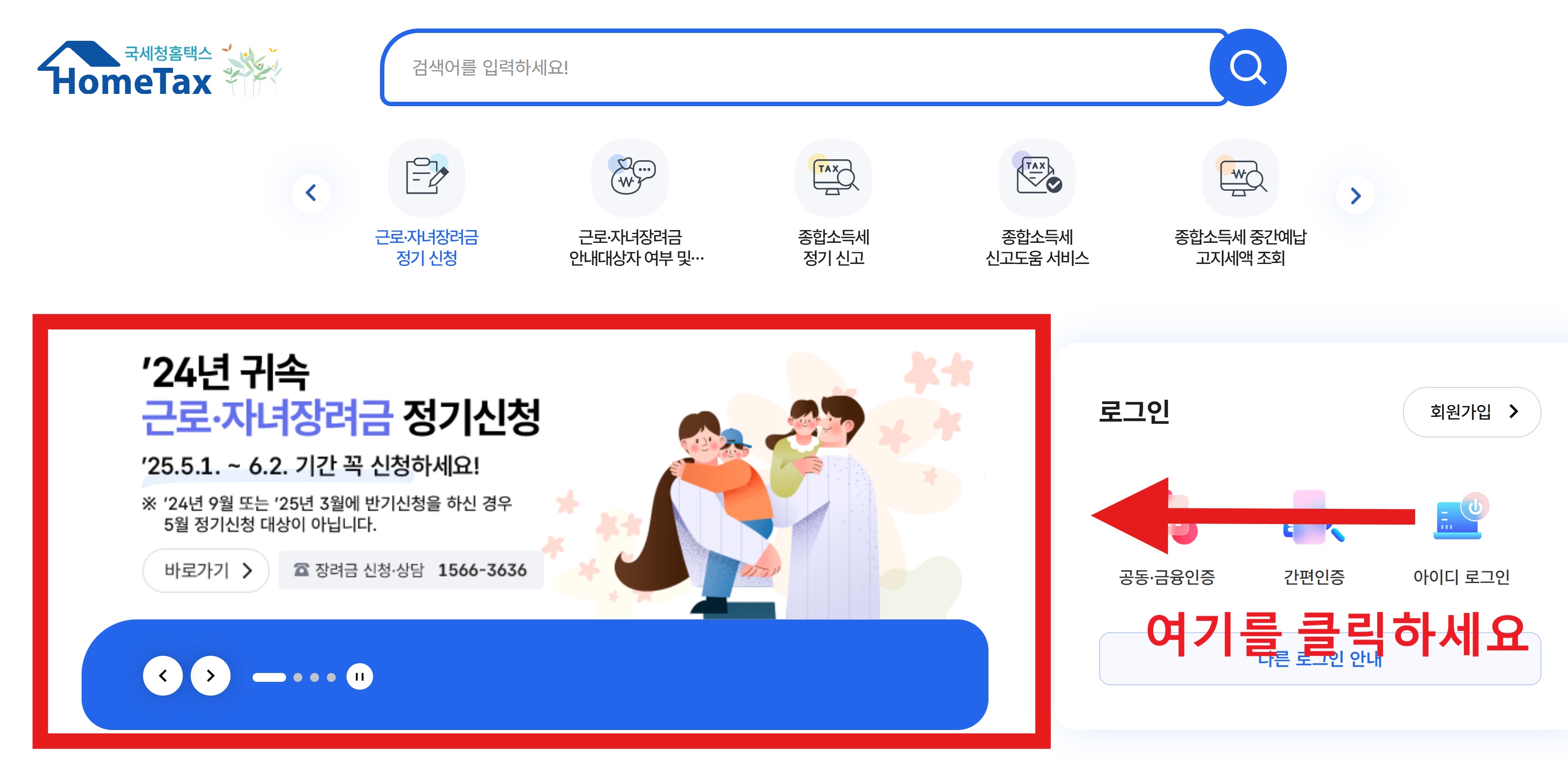 • 근로·자녀장려금 신청 메뉴 클릭