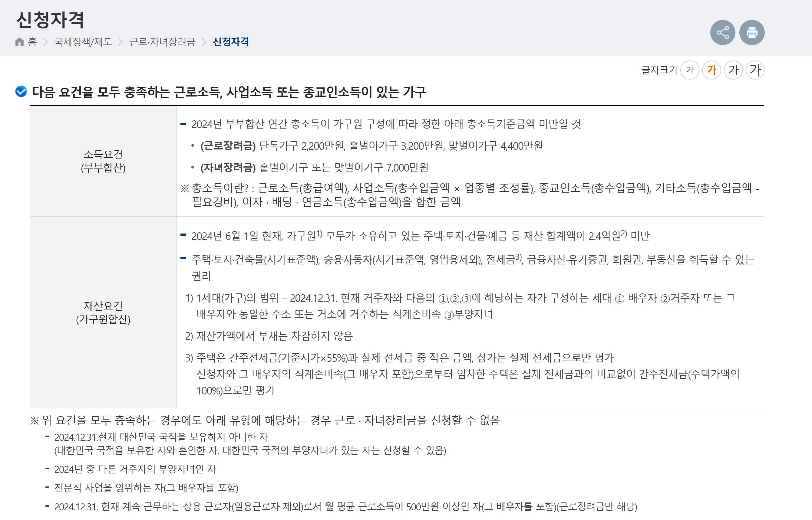 2. 근로장려금 신청자격 – 재산 요건