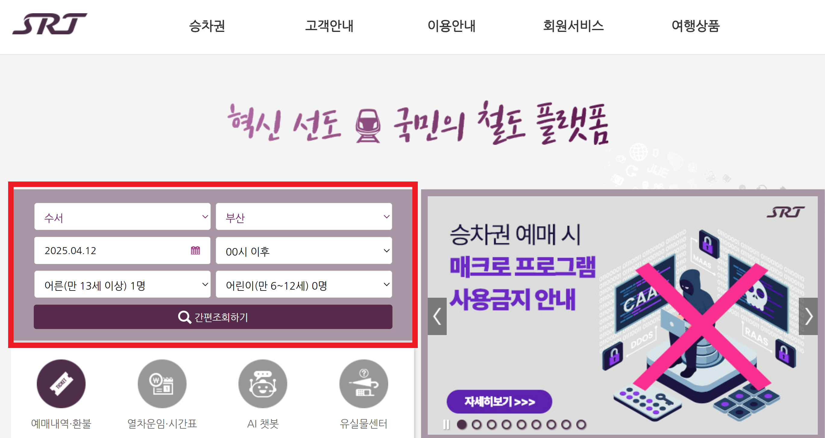 - 열차 조회:선택한 조건에 맞는 열차를 조회합니다