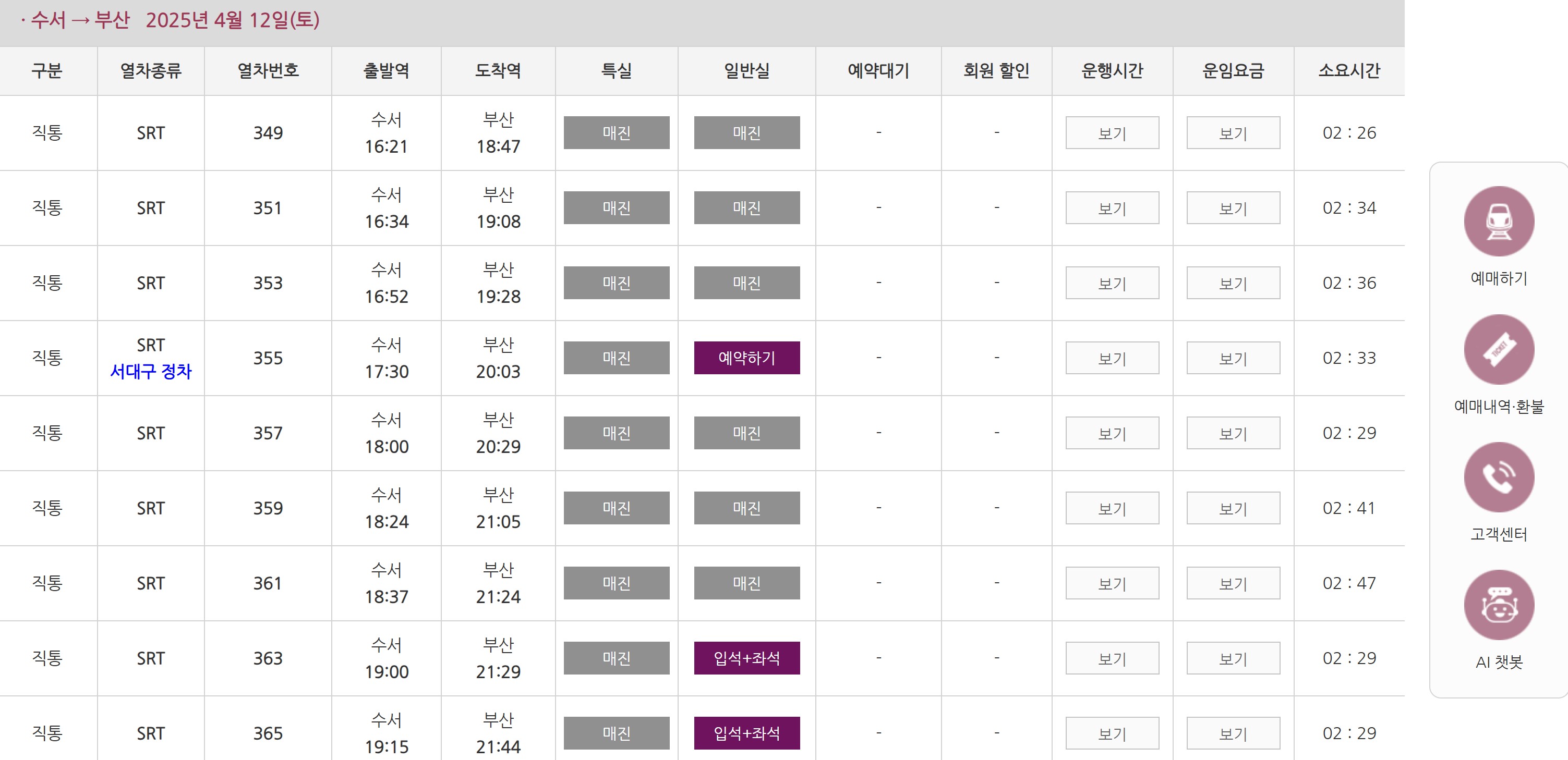 - 출발역 및 도착역 선택:수서, 동탄, 평택지제 등 출발역과 도착역을 선택합니다