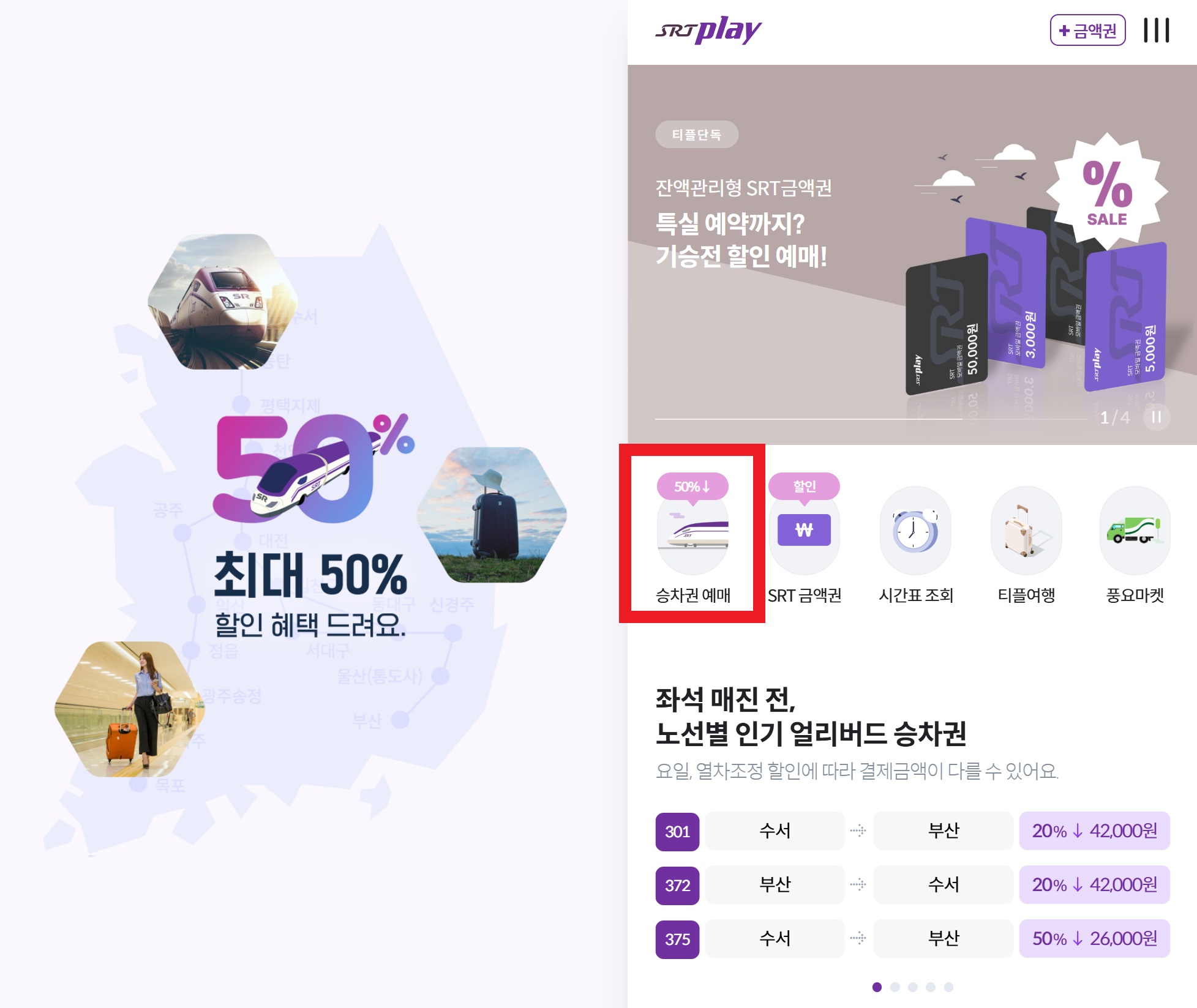 - 특징: 할인 승차권 예매가 가능하며, 최대 50%까지 할인 혜택을 받을 수 있습니다.